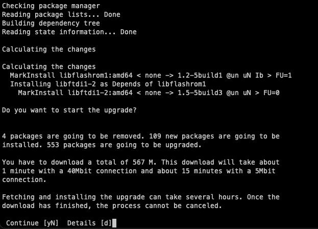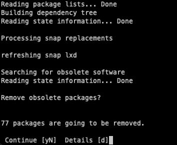 Bei der folgenden Frage wirst du gefragt, ob du veraltete Pakete, die von dem Upgrade übrig geblieben sind, entfernen möchtest. Du kannst diese einfach loswerden, da sie nur Platz wegnehmen.