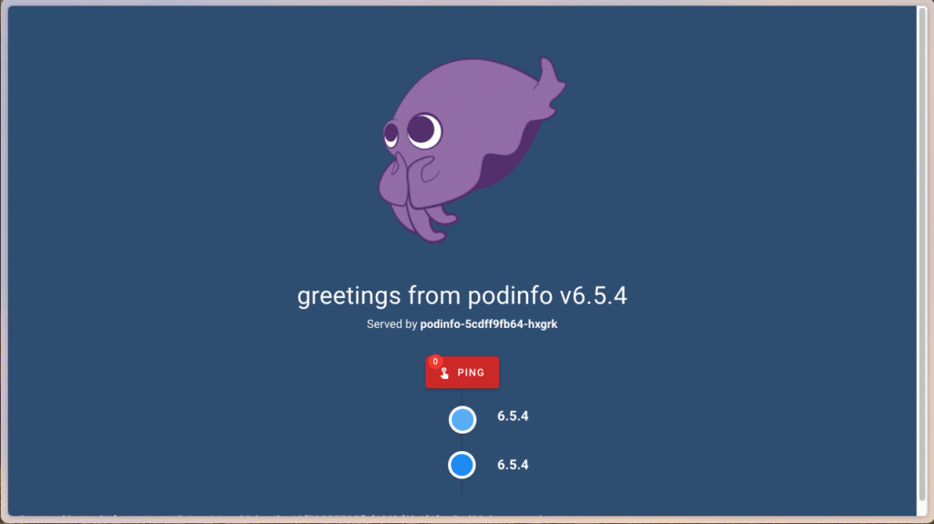 Das letzte fehlende Puzzlestück ist eine Anwendung, die wir absichern und mit unseren Webbrowsern aufrufen können. Wir werden hierzu podinfo deployen, eine oftgenutzte Demoanwendung mit einem kleinen Webfrontend. Zur Installation nutzen wir erneut Helm: