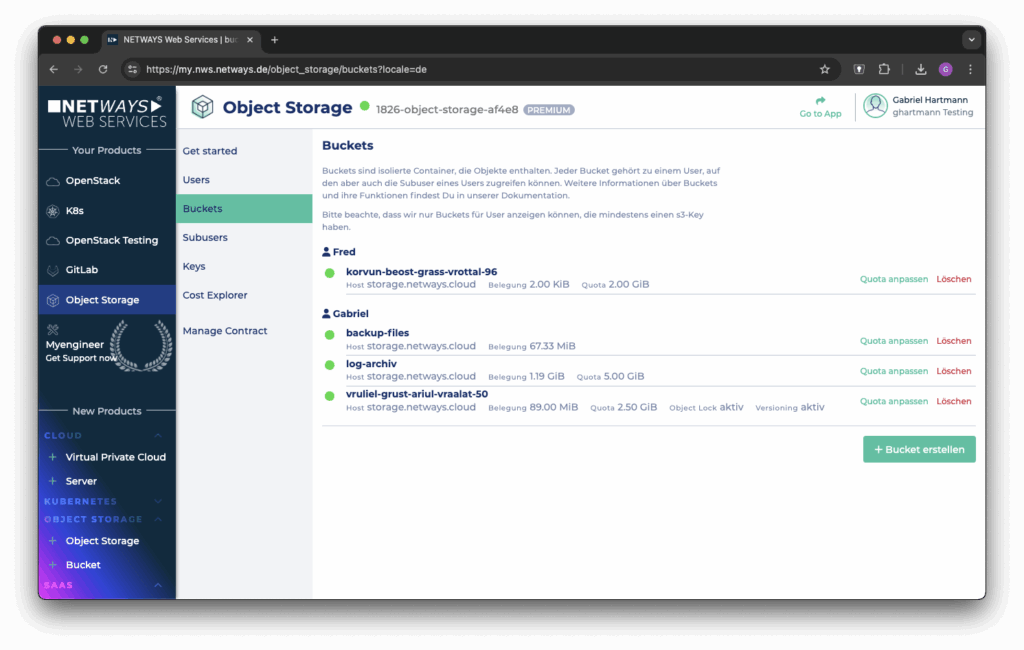 Ein großer Wunsch unserer Kunden war beispielsweise die Möglichkeit, mehrere User-Accounts verwalten zu können, um so Zugriffe auf Buckets trennen zu können.